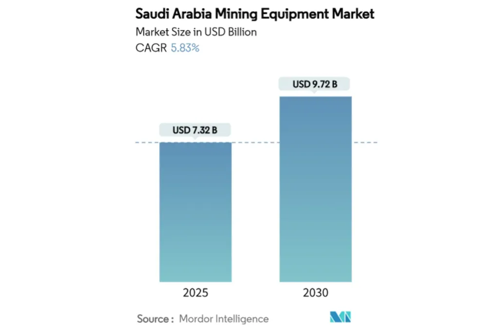 The mining equipment market is projected to grow from USD 7.32 billion in 2025 to USD 9.72 billion by 2030. This growth supports the Saudi Mineral Supply Chain by enabling advanced drilling, battery-electric fleets, and predictive maintenance technologies that improve efficiency and reduce costs.